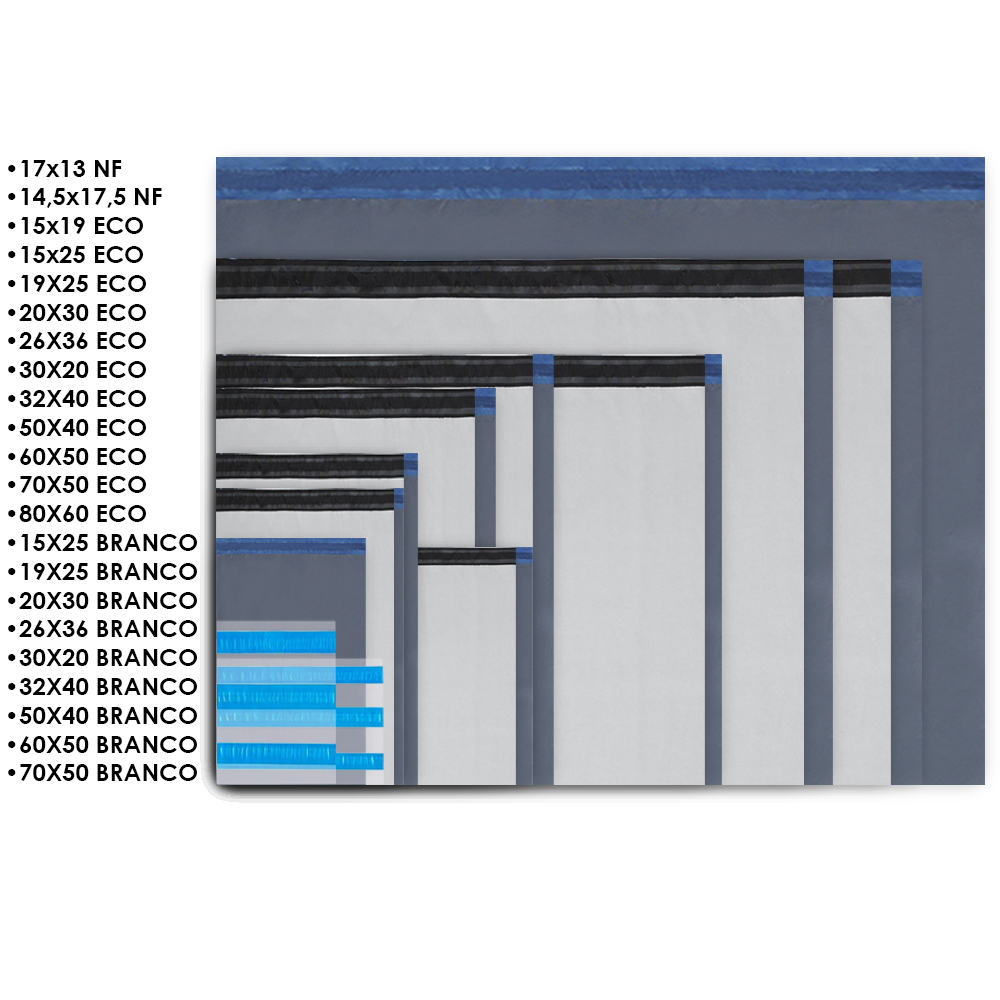 KIT AMOSTRA Envelope de Segurança Todas Medidas COEX, ECO e NF do 17x13 ao 80x60