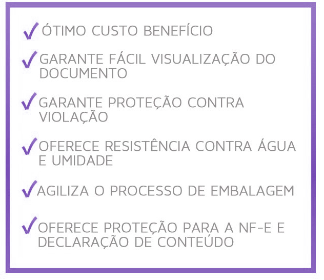 Produto superleve e de fácil manuseio, além de ser econômico gera uma agilidade maior para realizar o embalo dos produtos. Sua parte adesiva é em Hotmelt uma supercola, que uma vez que é fechado apenas rasgando a embalagem para abrir, impossibilitando assim adulterações ou reuso, trazendo assim maior segurança para o seu E-Commerce.